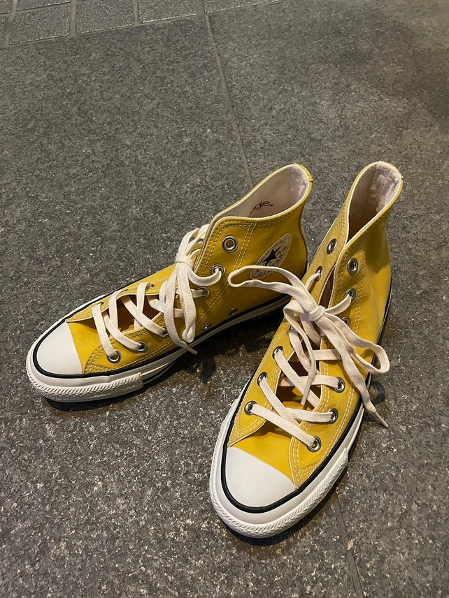 廃棄されるタマネギの皮から抽出した成分をベースに、様々な天然成分を配合して染色した「ONIBEGIE」ナイロン素材を採用したオールスター。