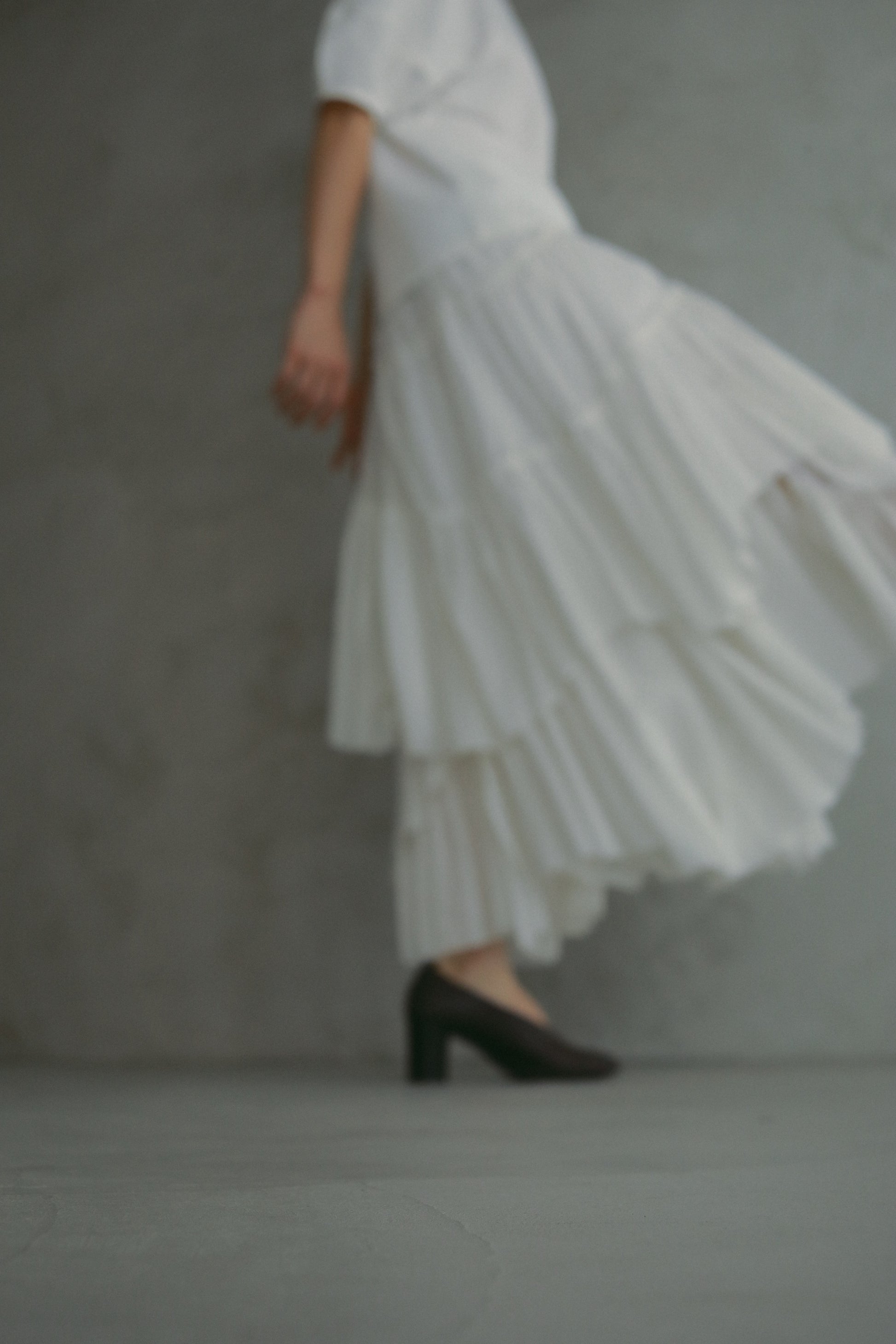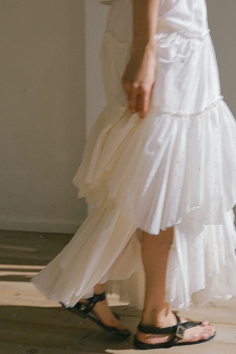 幾重にも重ねたこだわりのパーツが動く度に揺れるCASA FLINEならではのボリュームスカート。