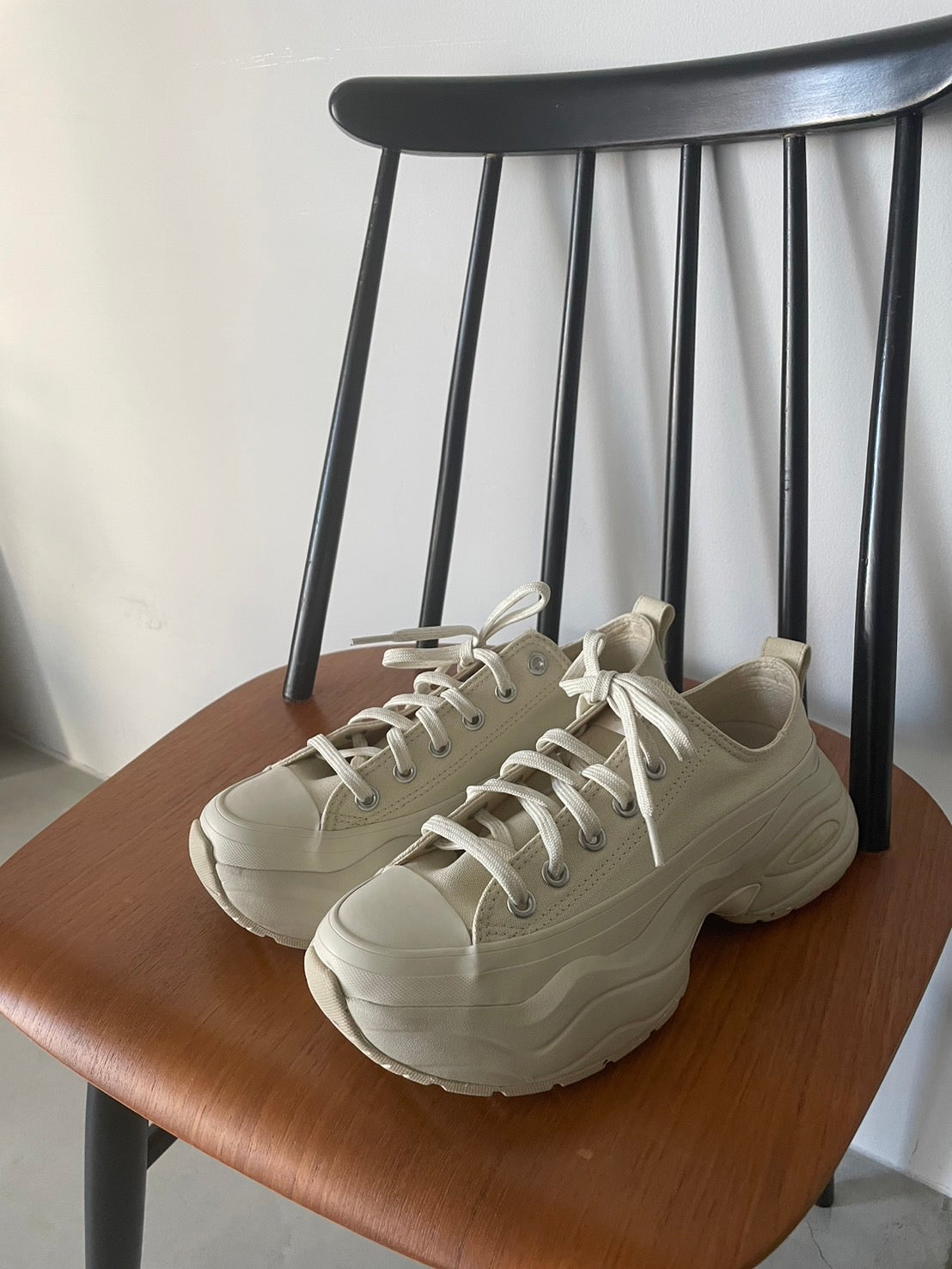 オールスターと90年代のトレーニングシューズをモチーフにしたボリュームのある厚底ソールを合体し、流線的でレトロスポーティな印象に仕上げたニューモデル。