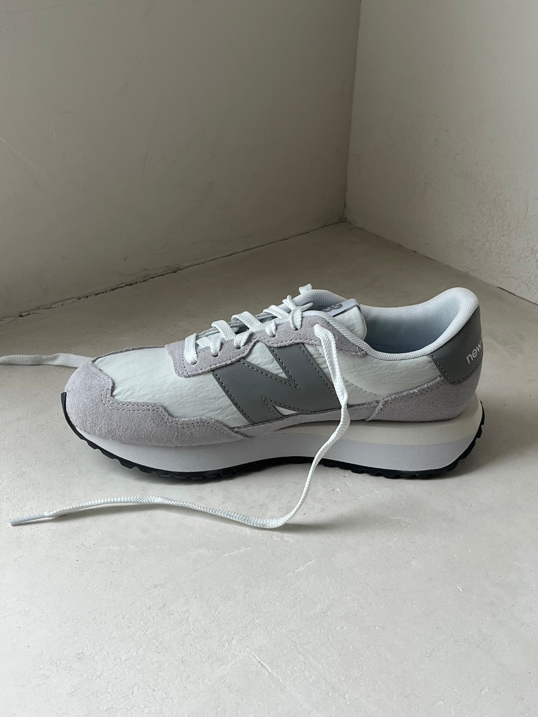 70年代を席巻した数々のニューバランスのレーシングシューズをアレンジしたレトロなフォルムに、ビッグNロゴを外側だけに配した印象的なルックスで提案する人気モデル「327」のユニセックスライン「U327」。 スエードとナイロンのコンビネーションのアッパーを、スタイリングに合わせやすいホワイトベースに仕上げ、Nロゴにアクセントカラーを取り入れた一足。
