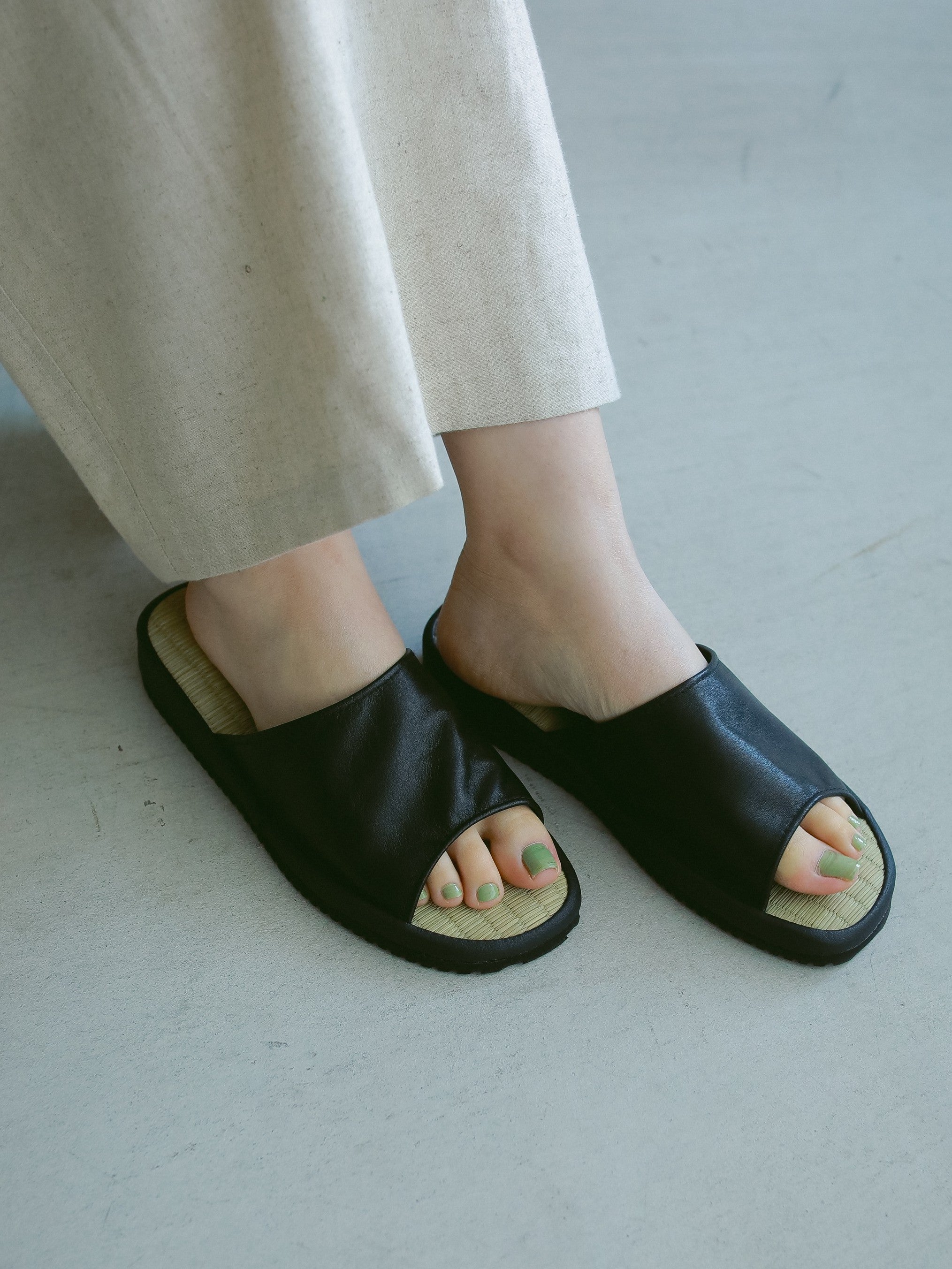 アッパーには、革産地として1000年以上の歴史を持つ、姫路でなめしたステアレザーを使用し、インソールには、熊本県・福岡県で大切に育てられた九州産い草を使用した畳表を採用。