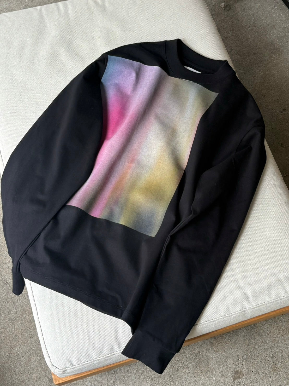 フロントには大胆なフォトプリントを配した、今年のトレンドを象徴するようなロングスリーブTee。