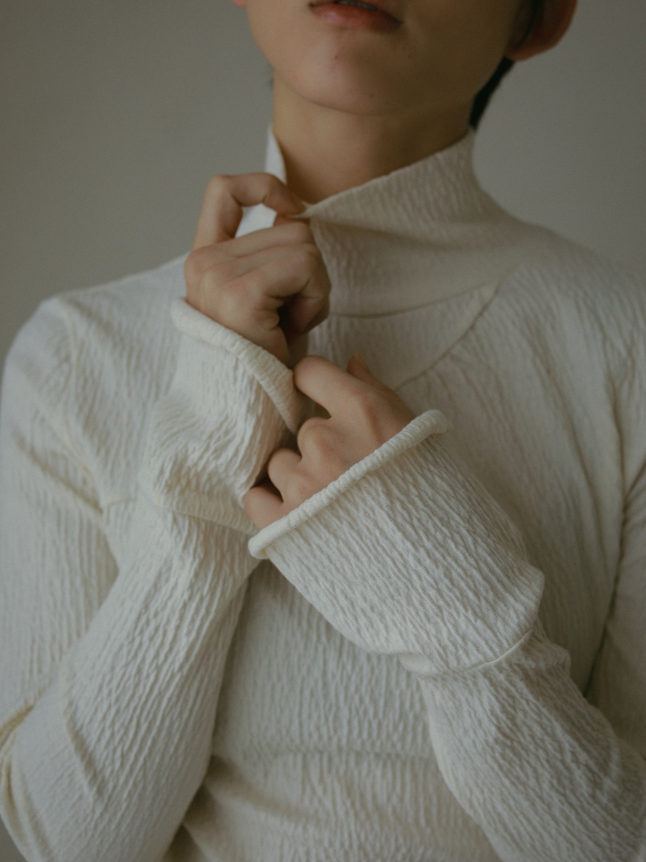 程良い肉感と伸縮性を持ち合わせた表情のある天竺を使用。