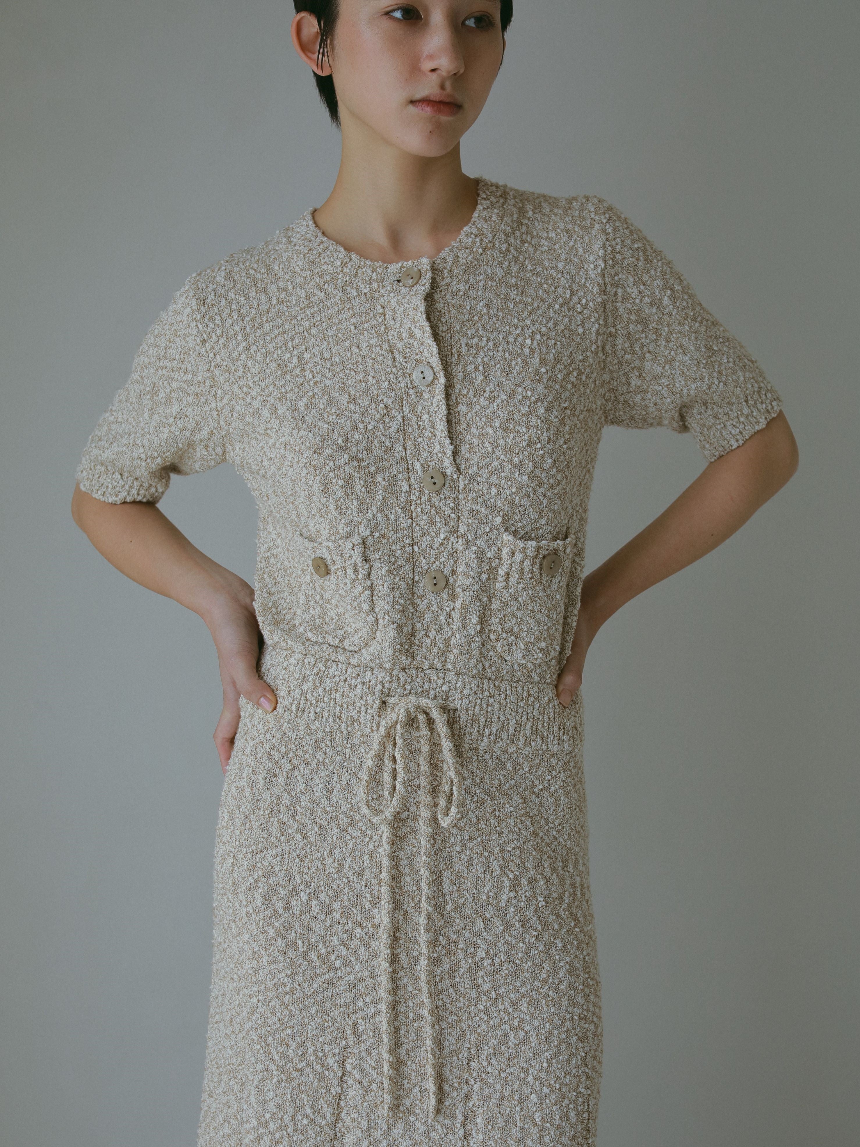 3種の素材を混紡することで風合いを増したツイード糸を編み立てました。