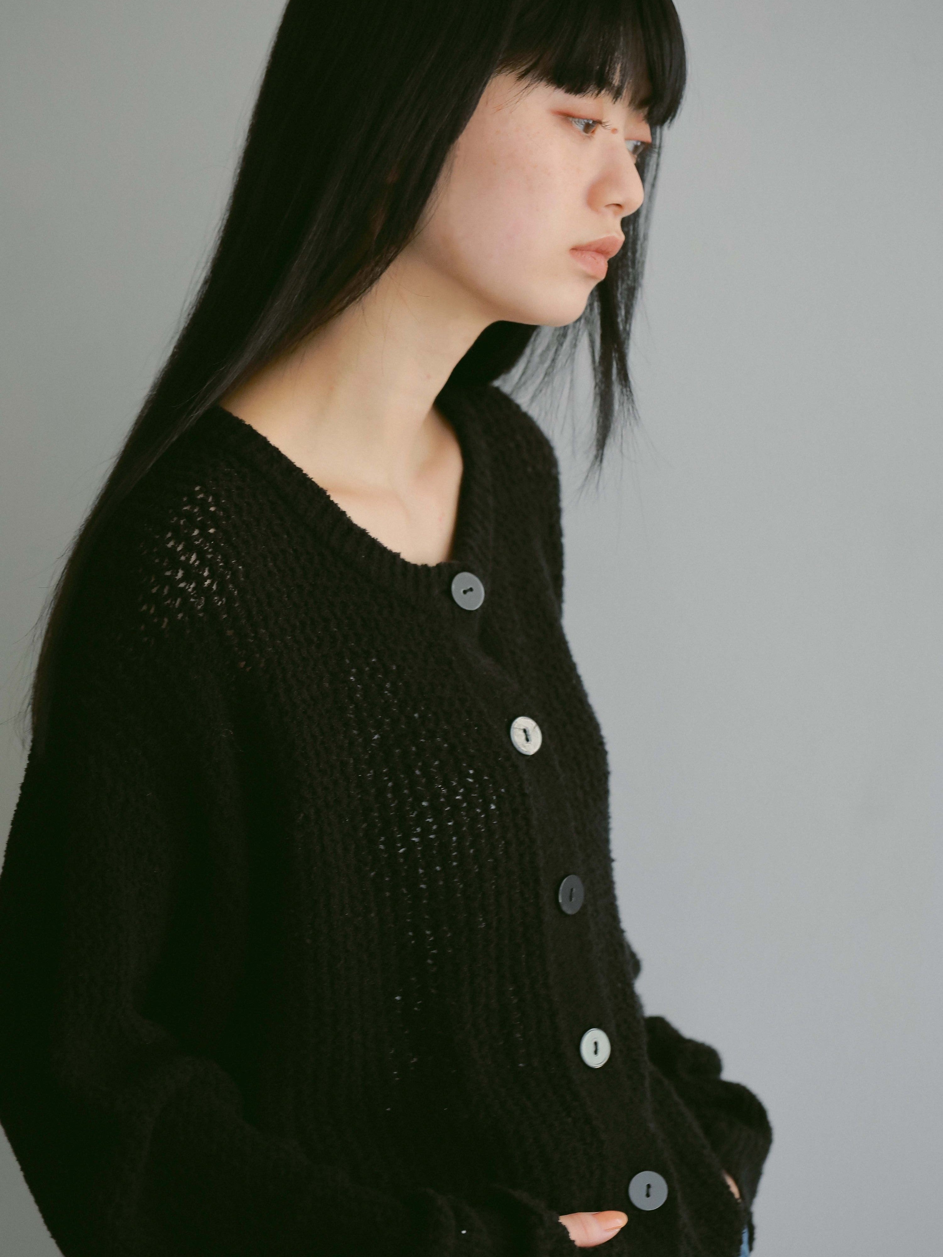 綿糸の持つ風合いと、編地から覗く透け感が、独特の雰囲気を醸し出します。