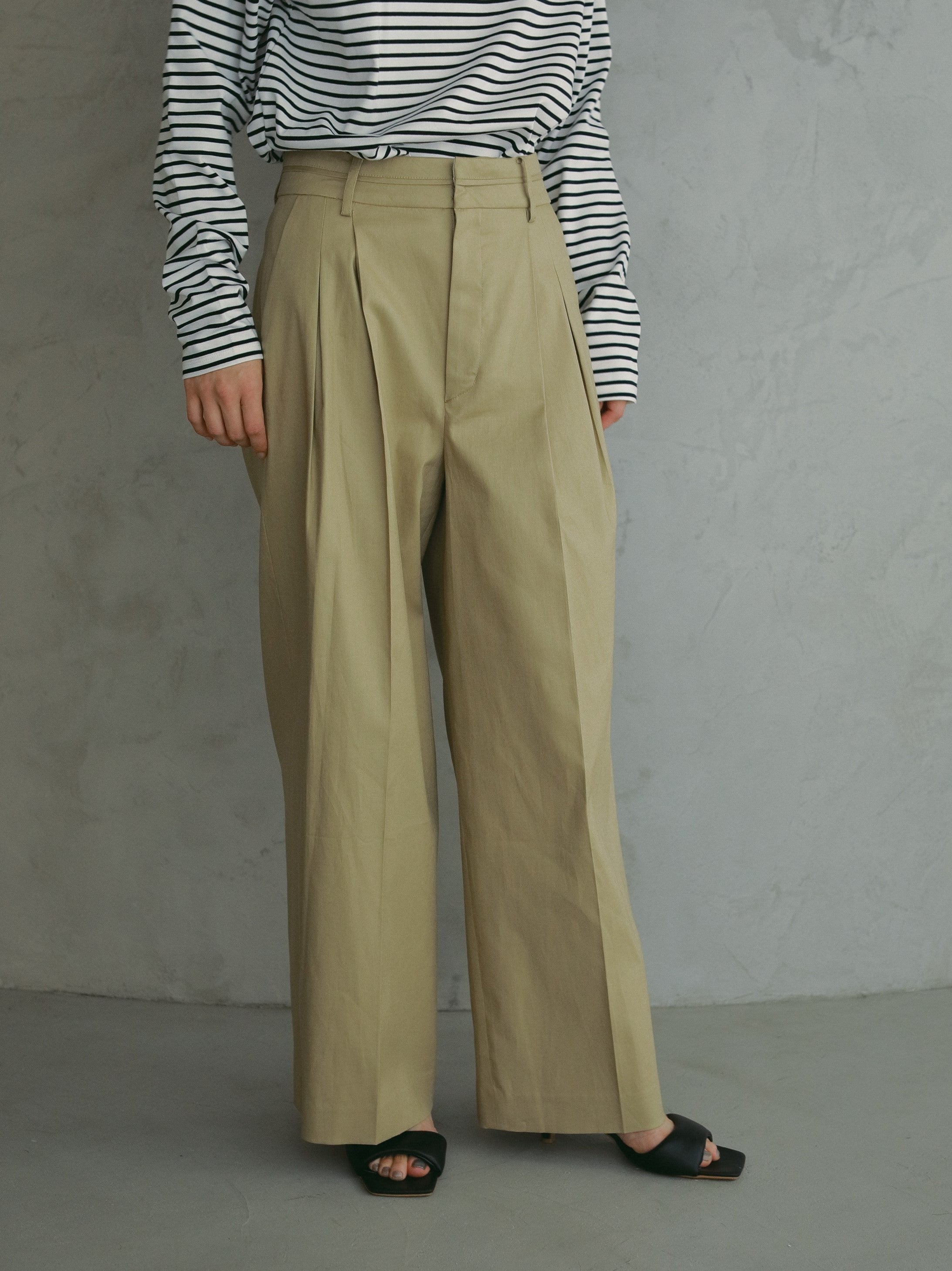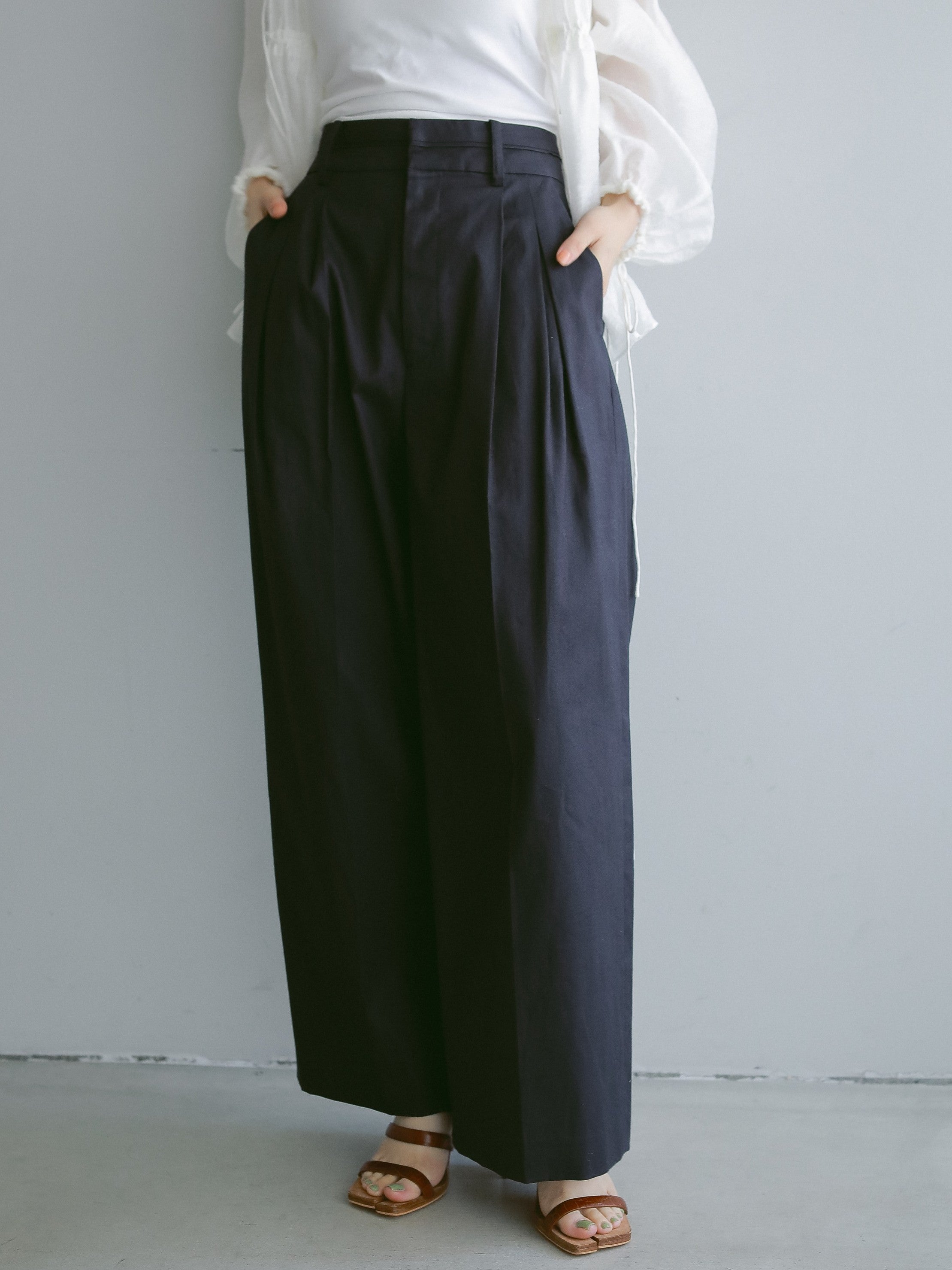 大ぶりのタックデザインを施すことで、大胆なファッション性を醸し出すパンツです。