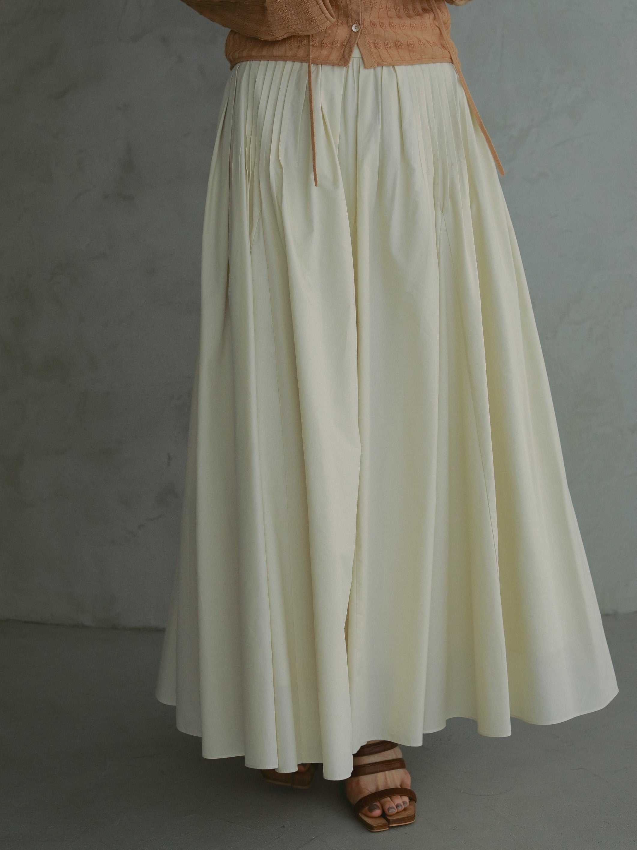 高密度でありつつもハリ過ぎず、程よい光沢感としなやかさを兼ね揃えたスカートです。
