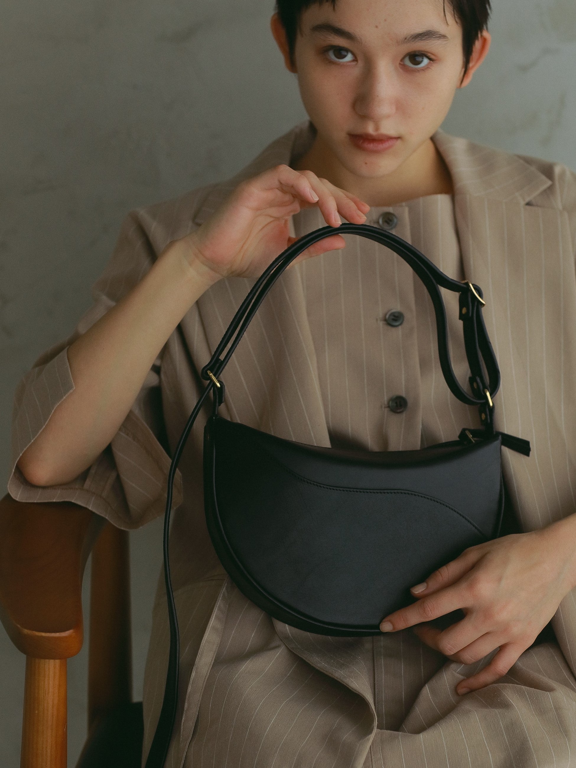 ゴールドのパーツが本革との相性が良く、適度な高級感とこなれ感を演出します。
