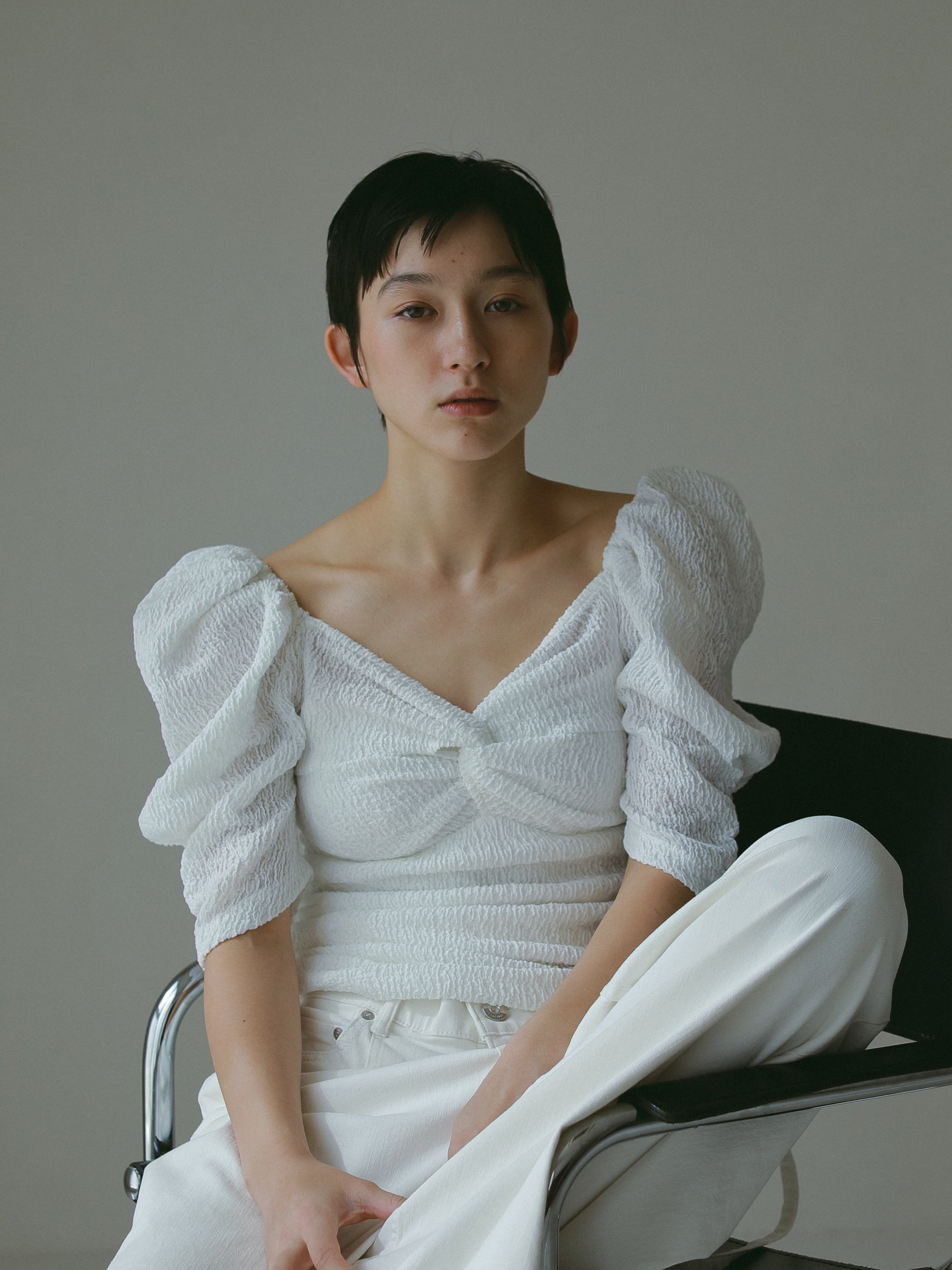 CASA FLINE大人気のカップ付きギャザートップスから新素材バージョンが登場。