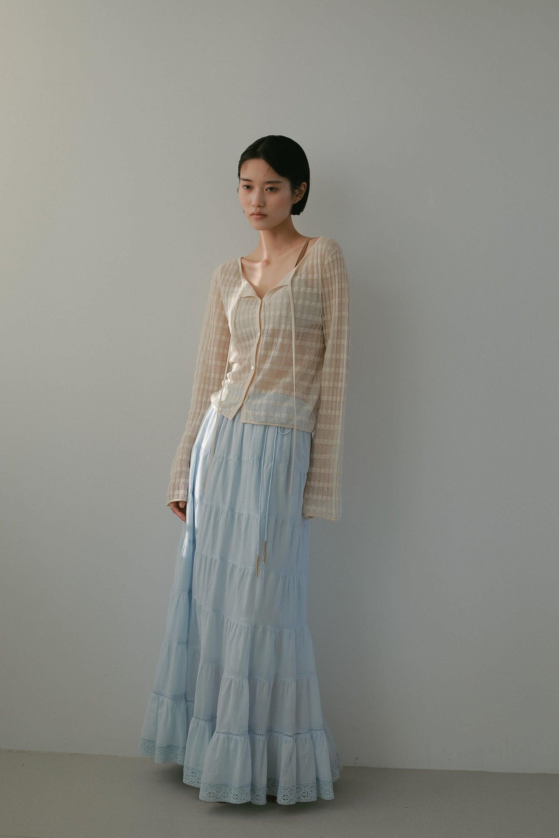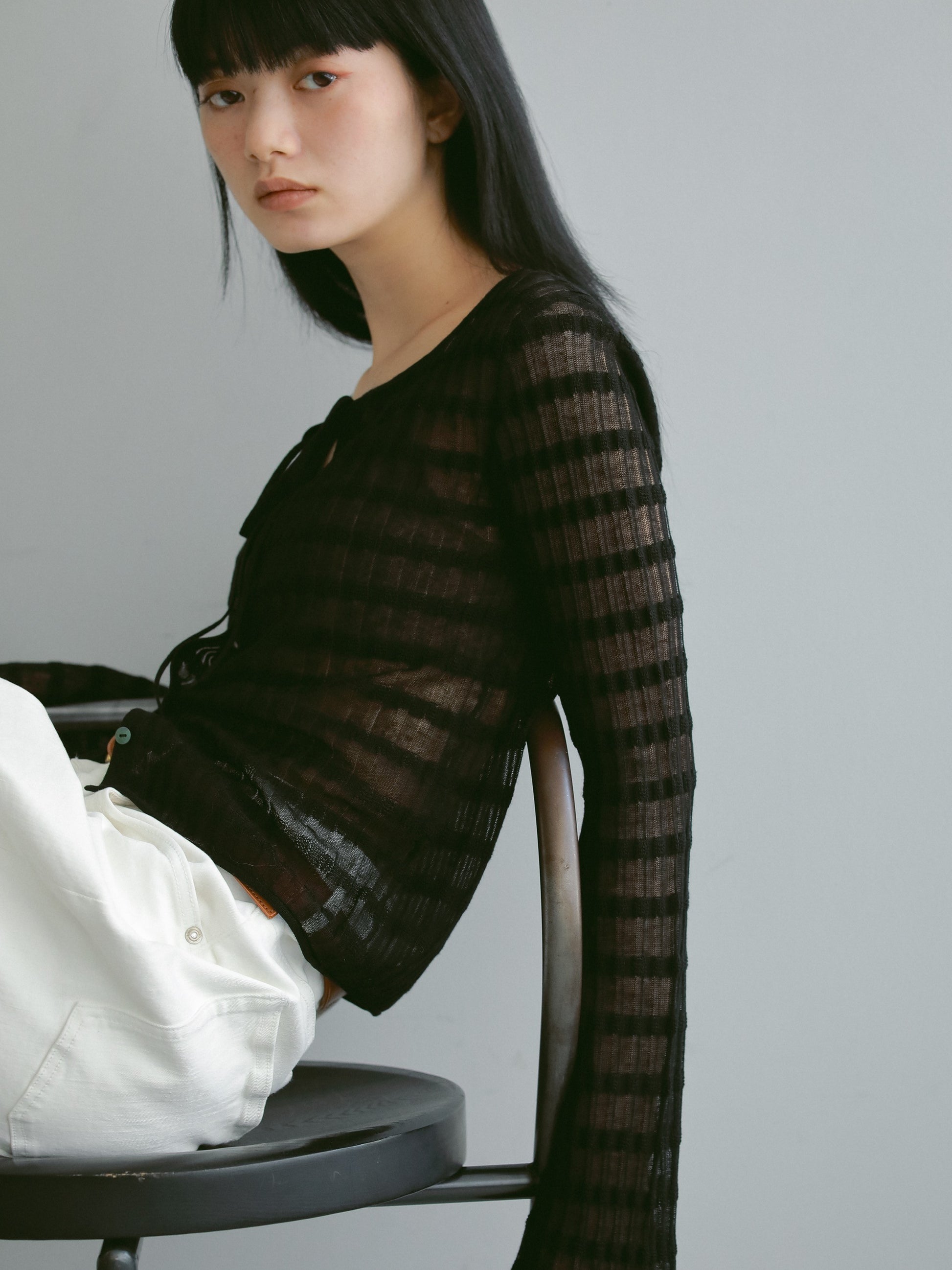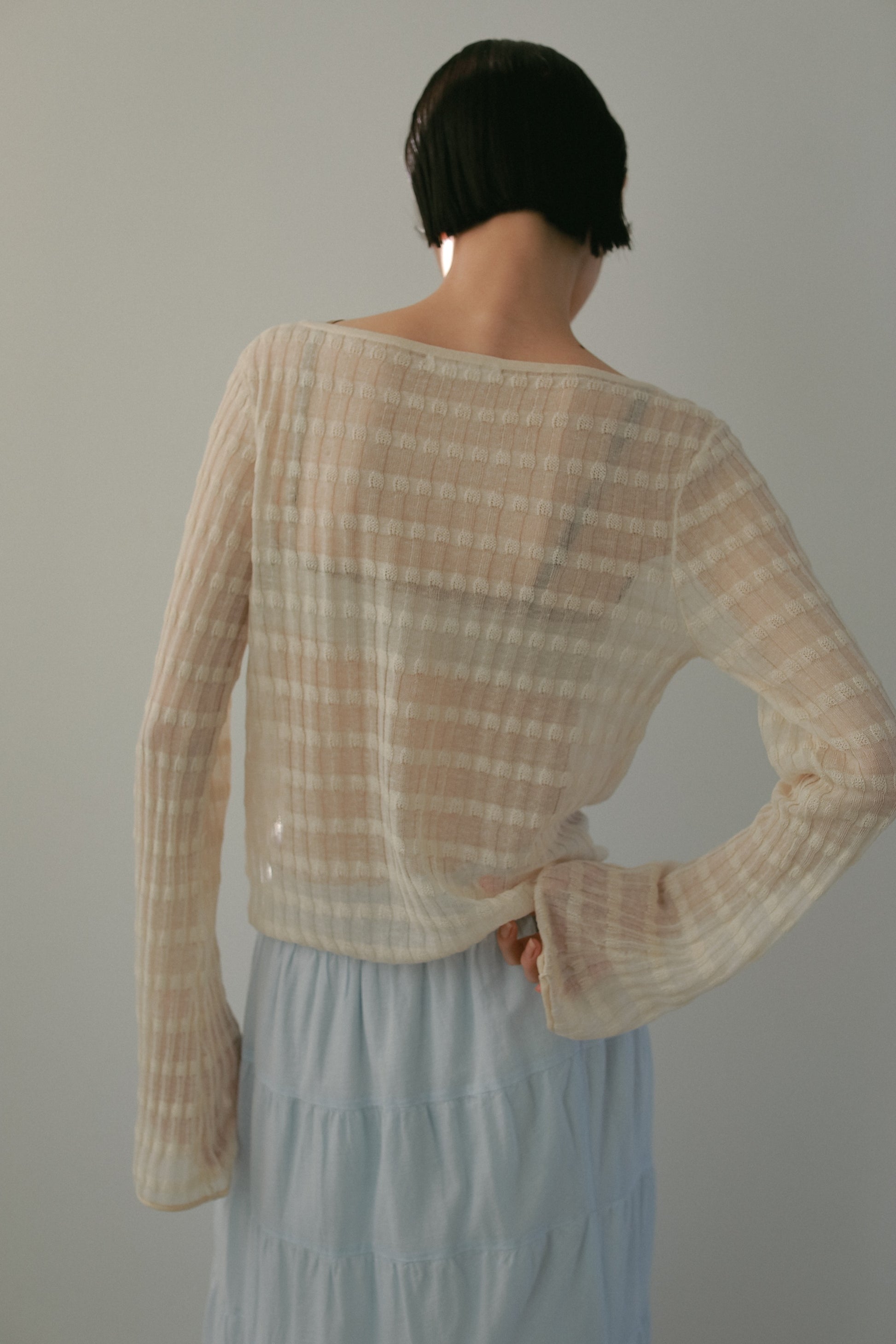 透かし編みのボーダーが季節にぴったりの一枚。
