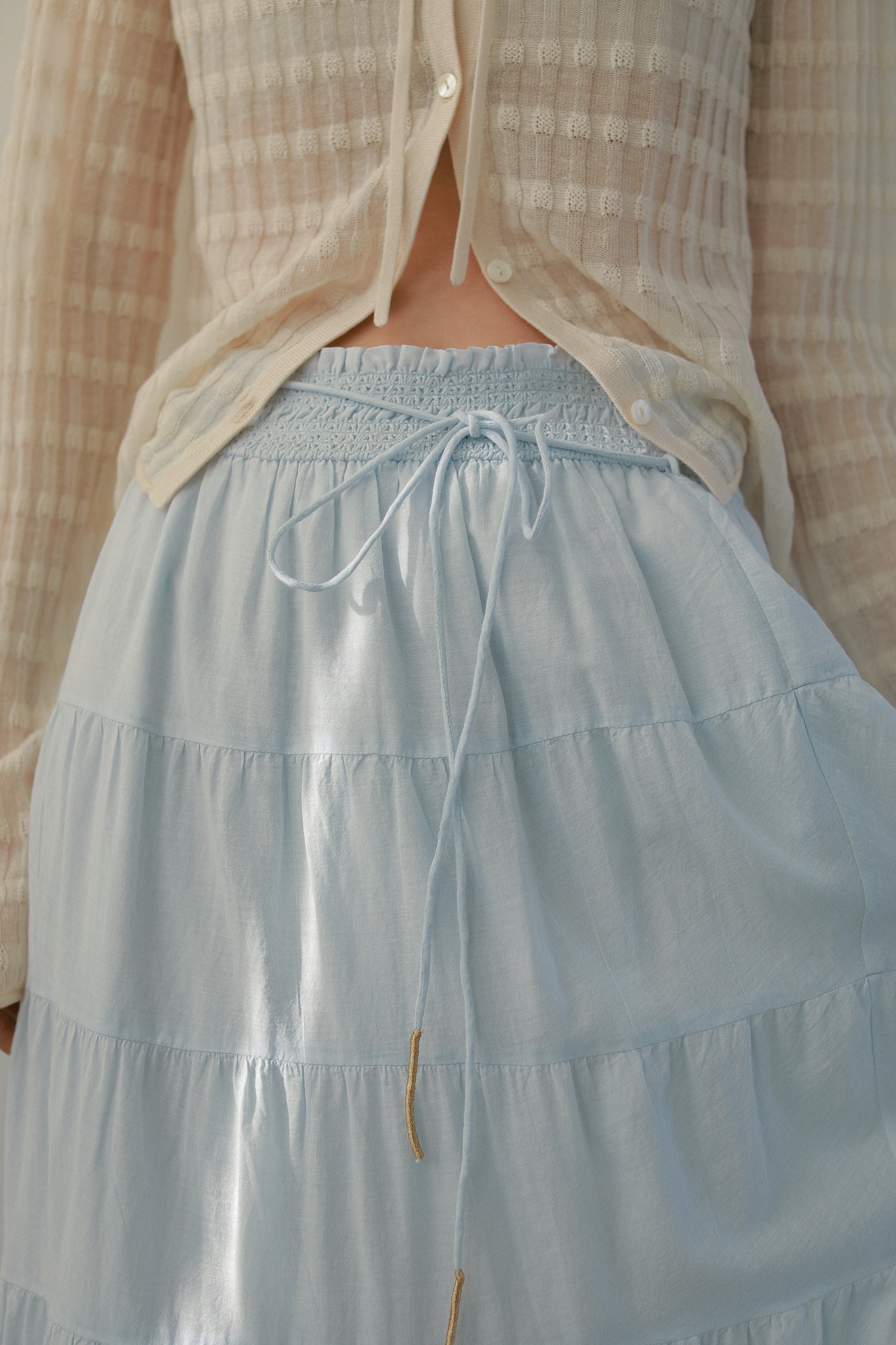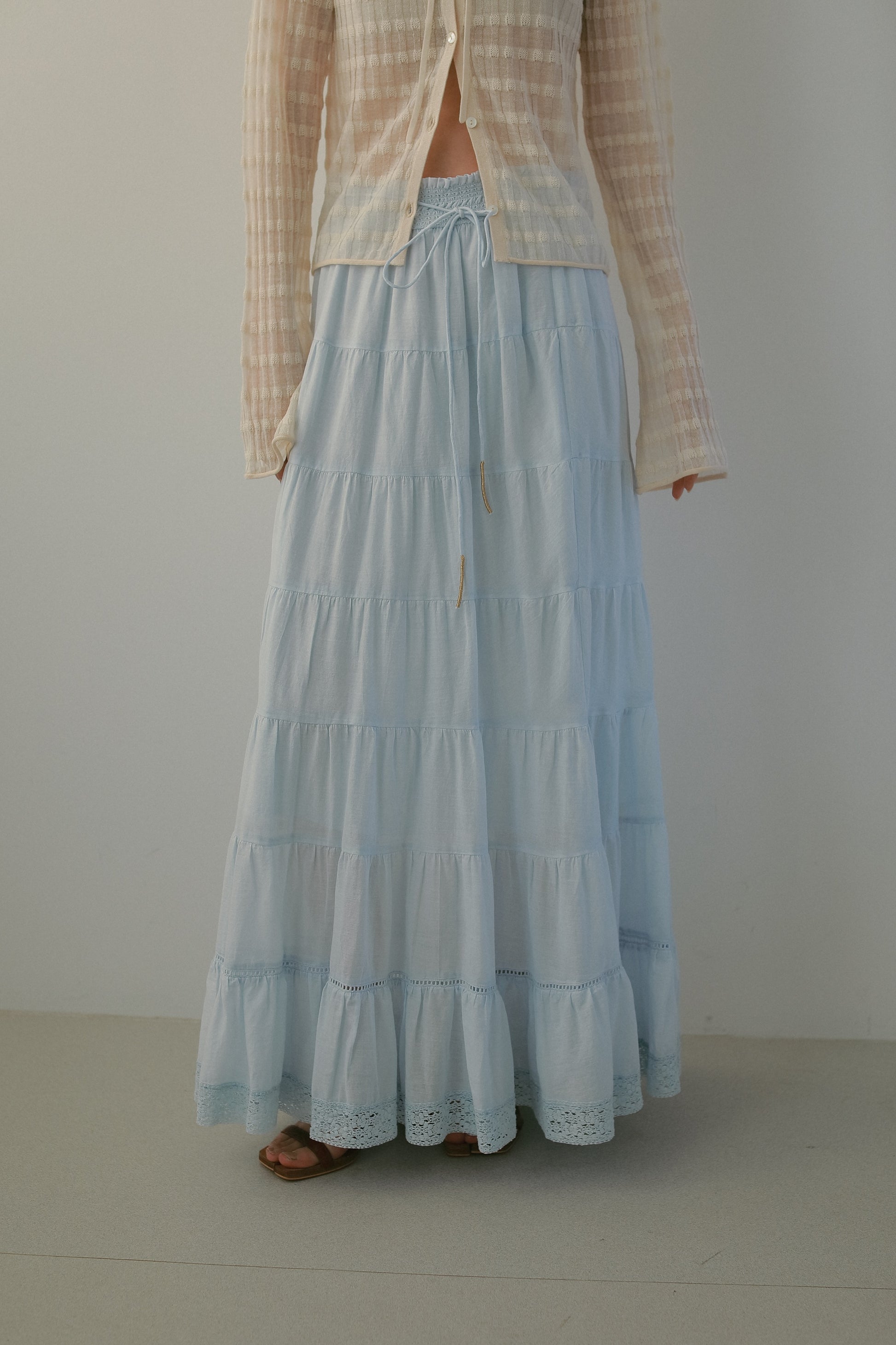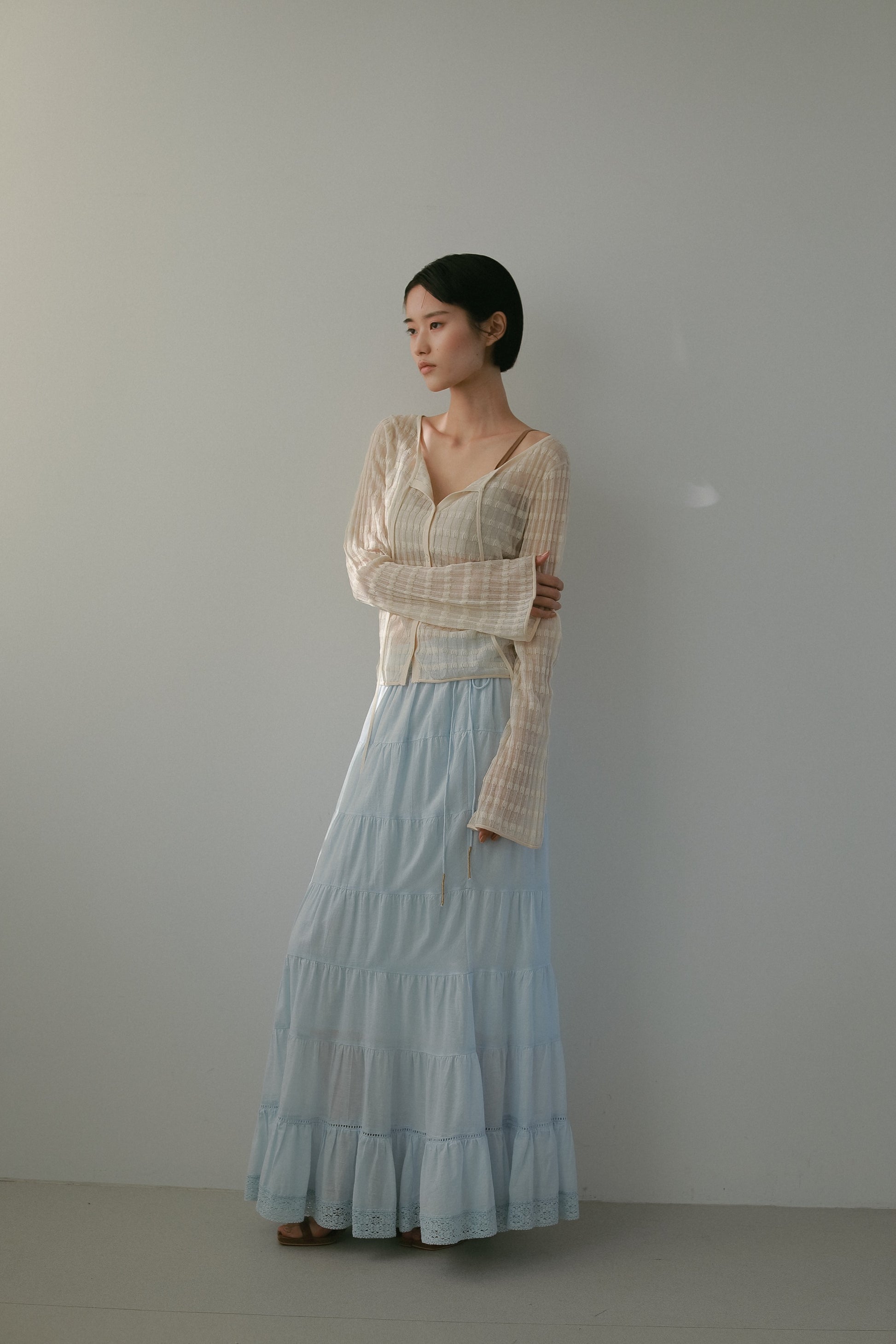 透かし編みのボーダーが季節にぴったりの一枚。