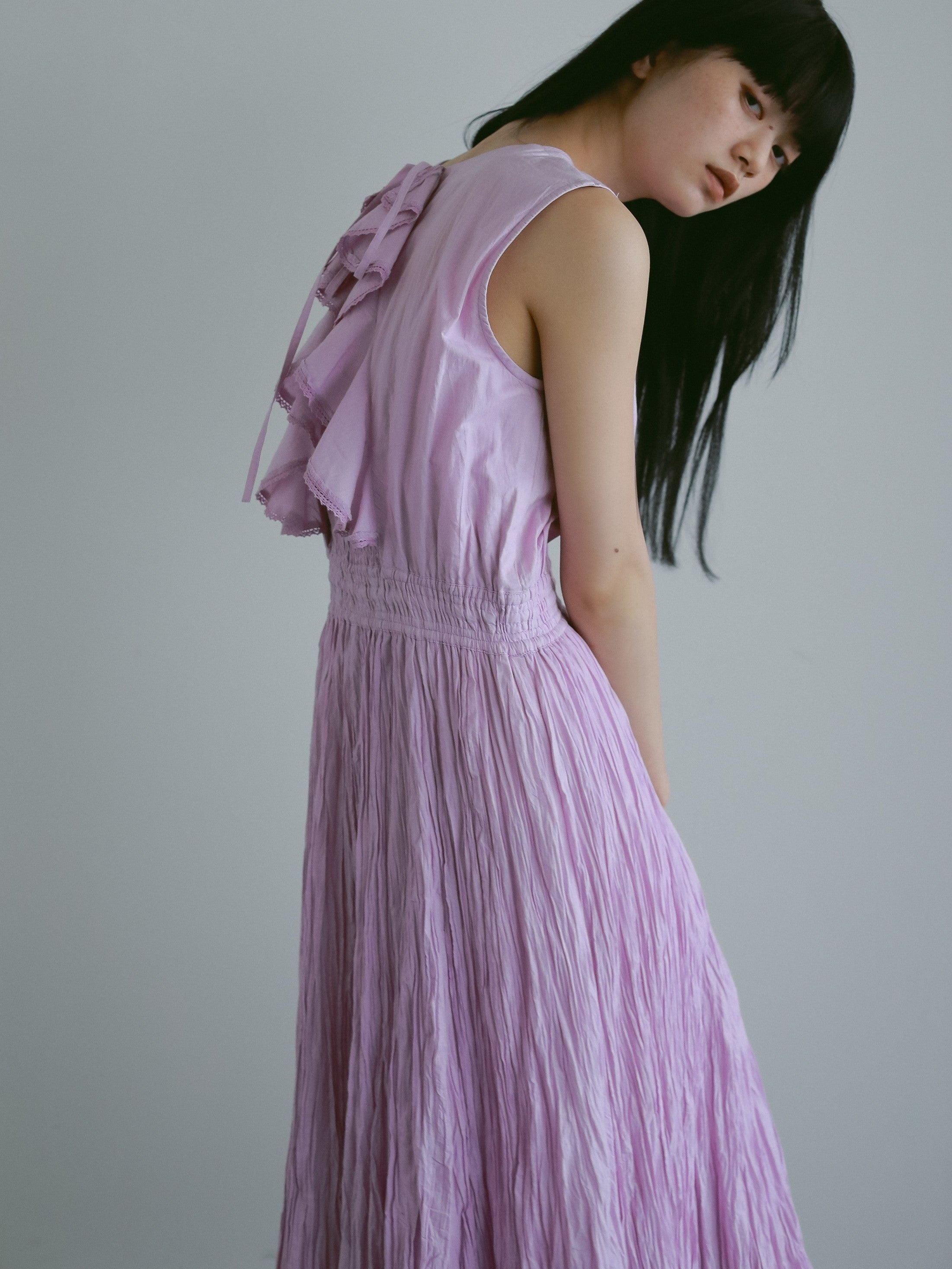 バックスタイルに特徴のあるデザインを表現したコットンドレス。
