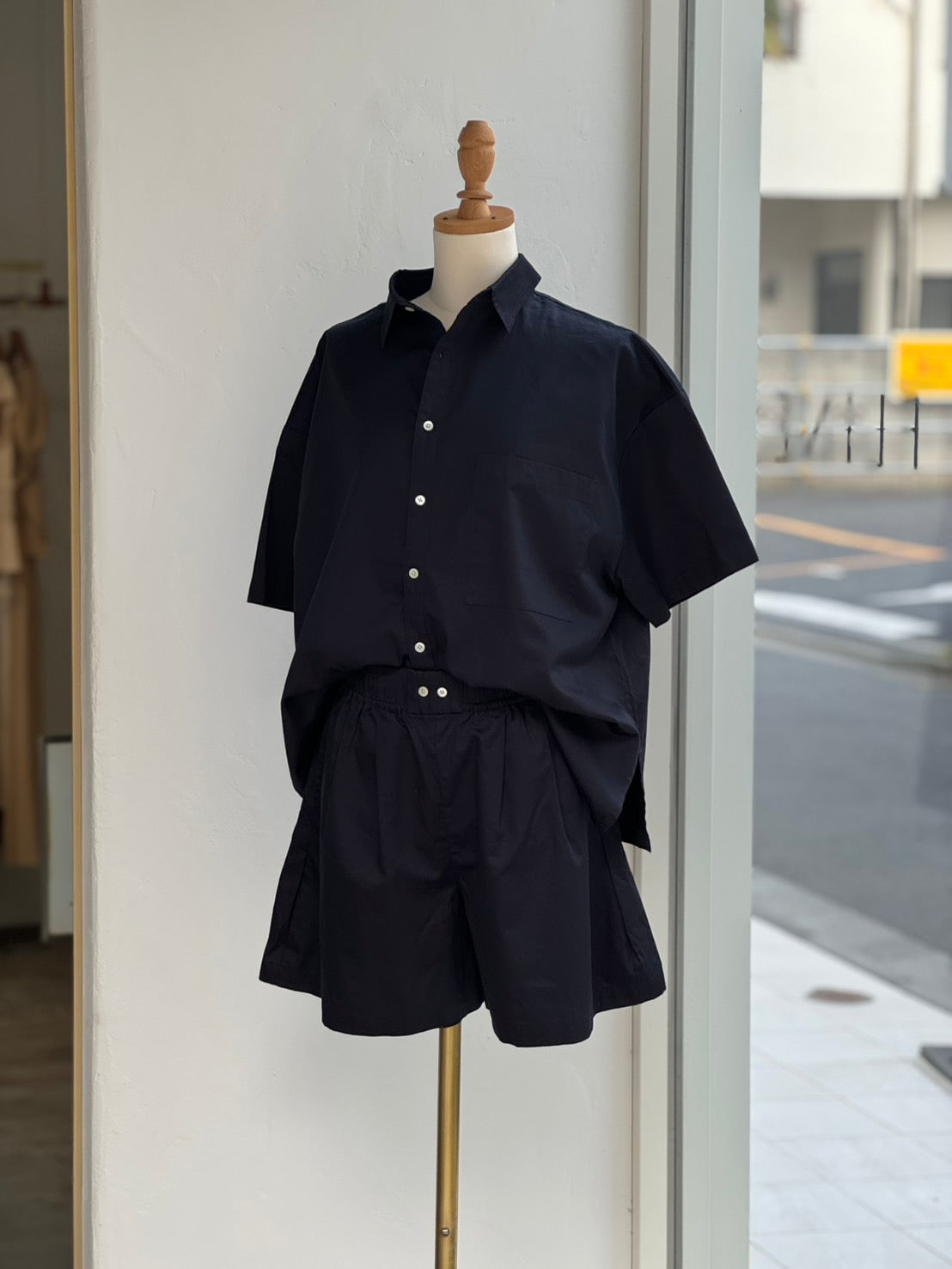 ゆったりとしたシルエットのシャツ、ウエストゴムのショートパンツ、ともに、単品でも使いやすいデザインに仕上がりました。