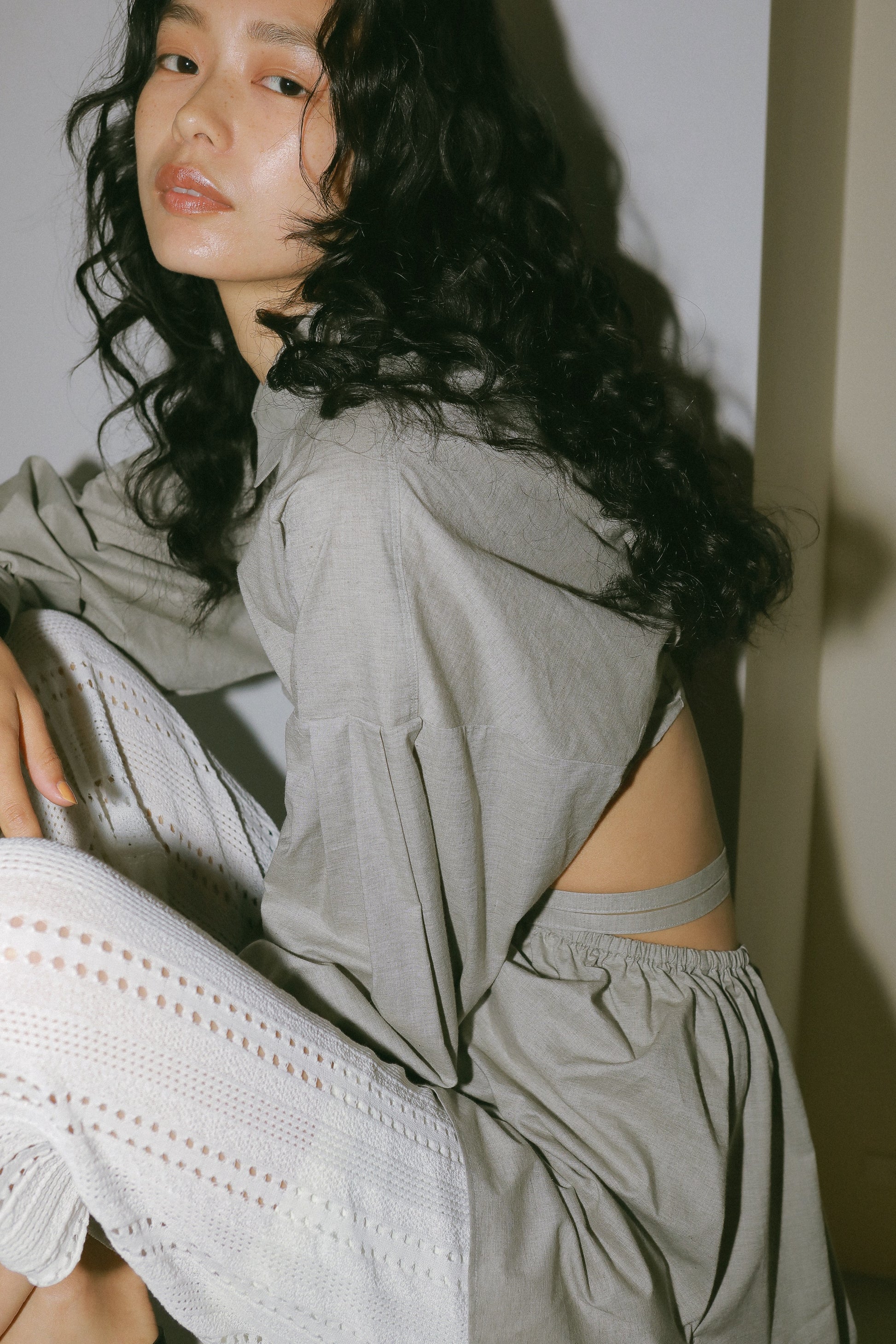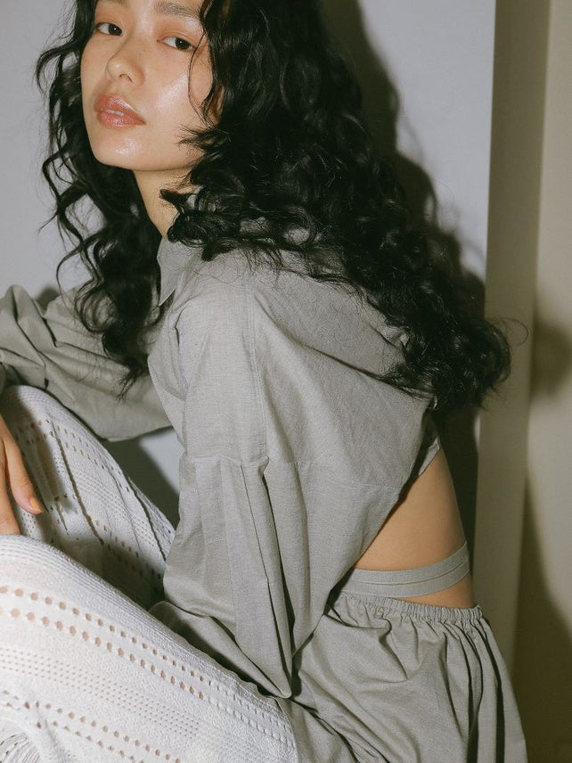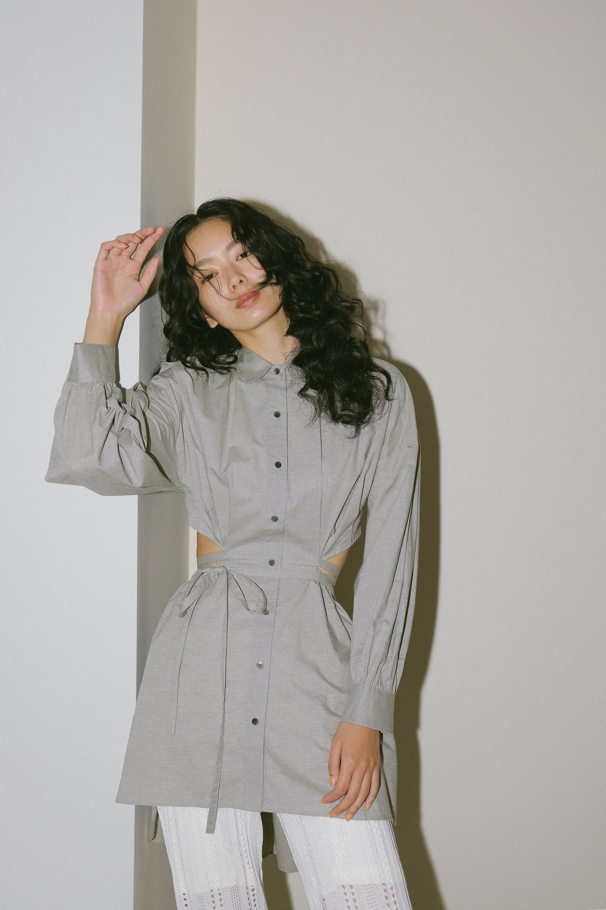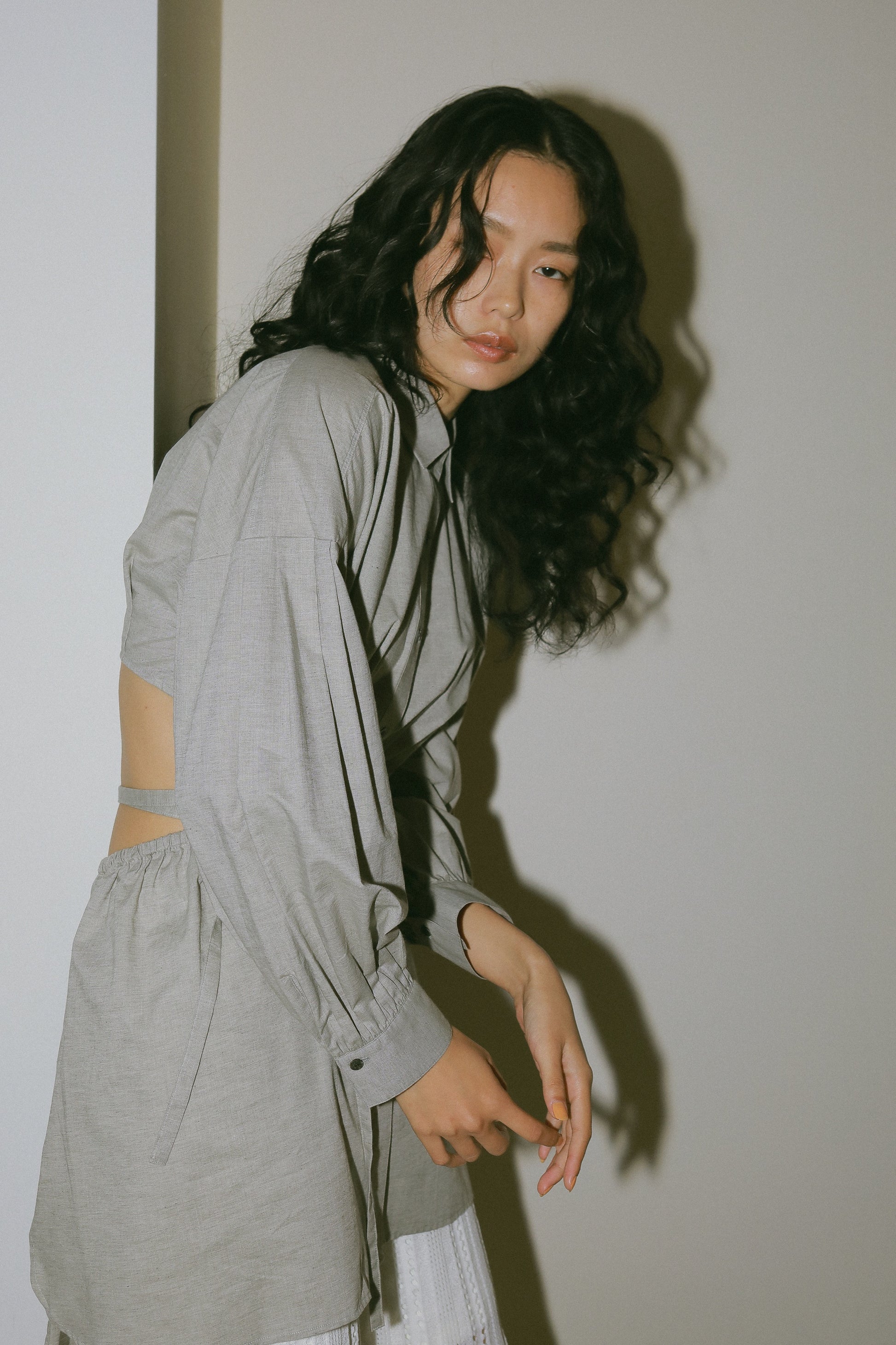 バックの腰まわりが空いてるのがポイントのシャツ。