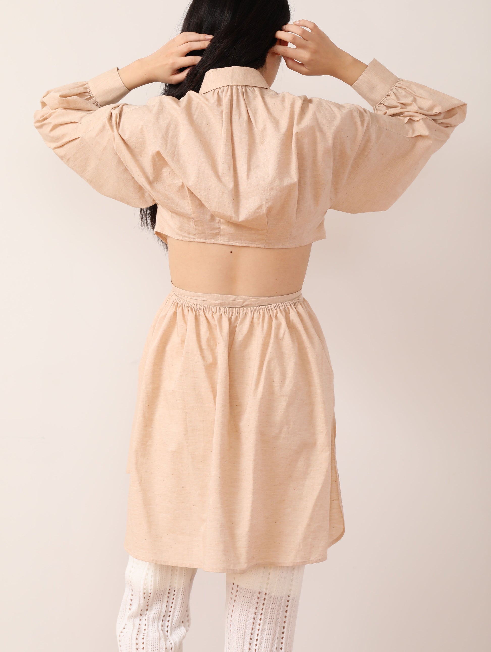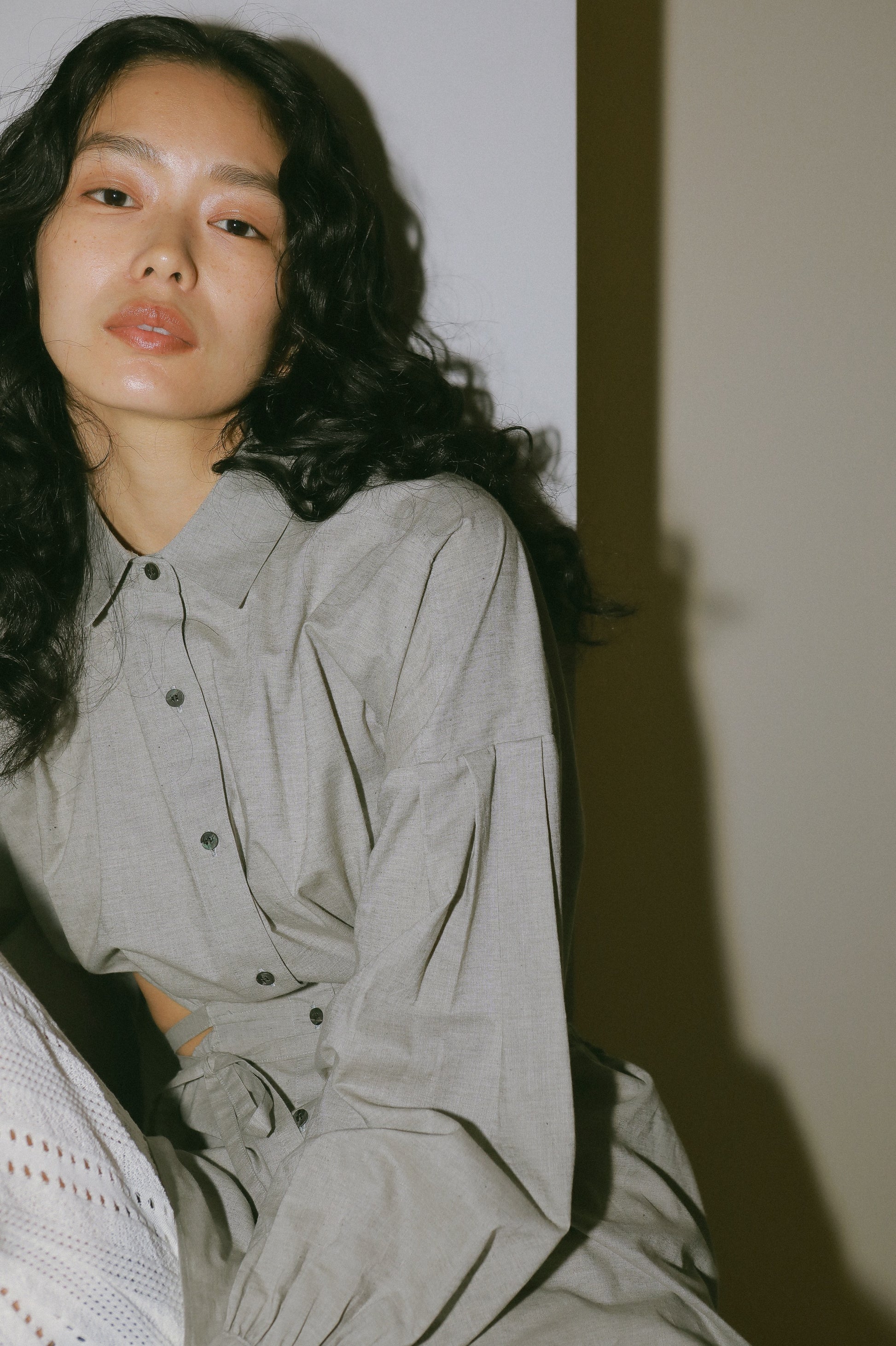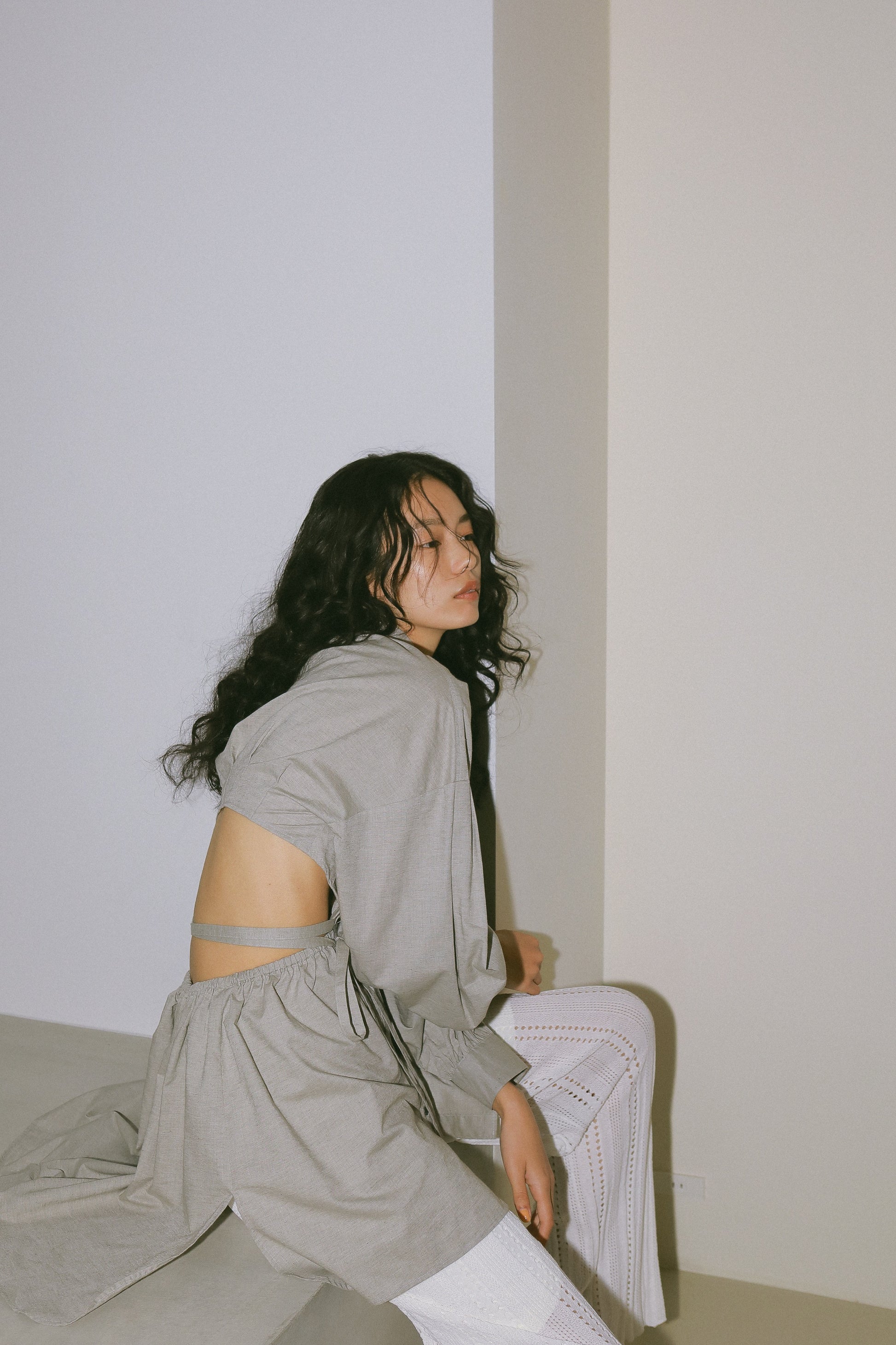 バックの腰まわりが空いてるのがポイントのシャツ。