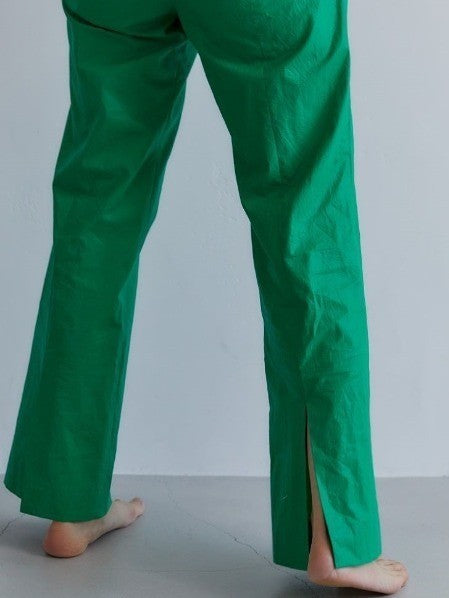 重衣料のトップスが増える季節に、スッキリとした印象に仕上げてくれる光沢のあるパンツです。