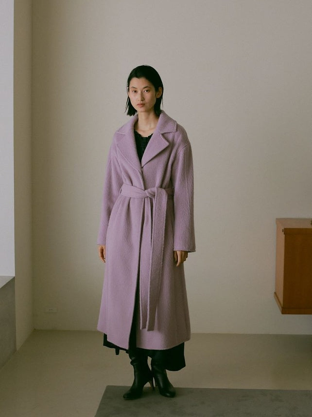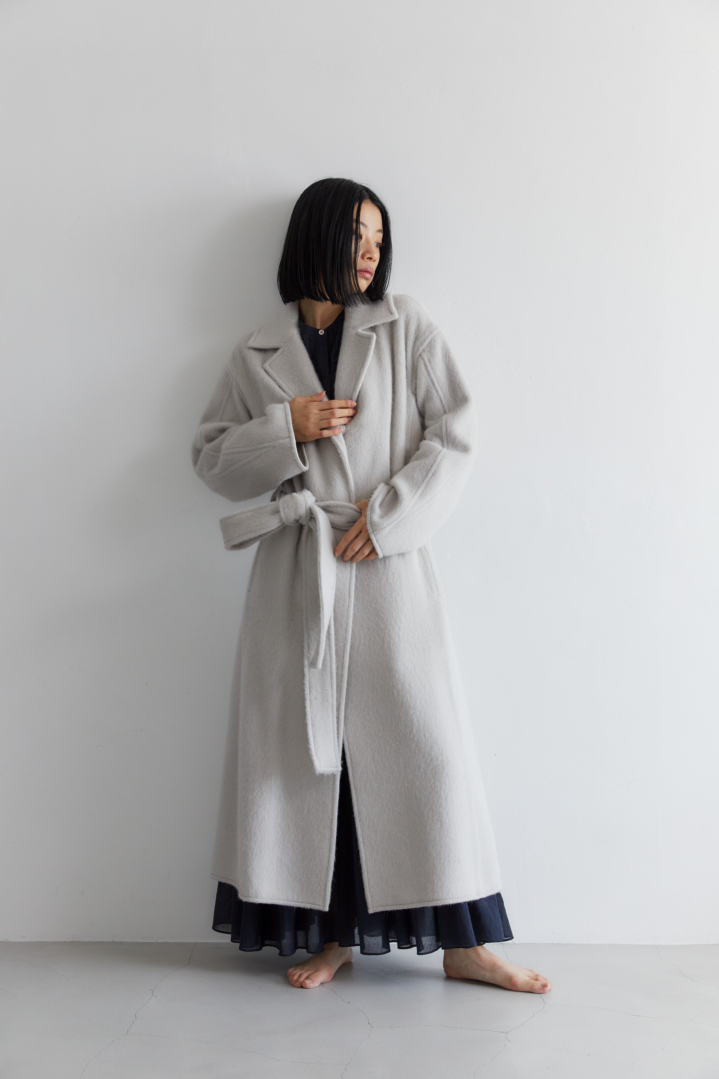 毛足の長い表面感のある素材感が一枚仕立てのコートを立体的に見せてくれます。