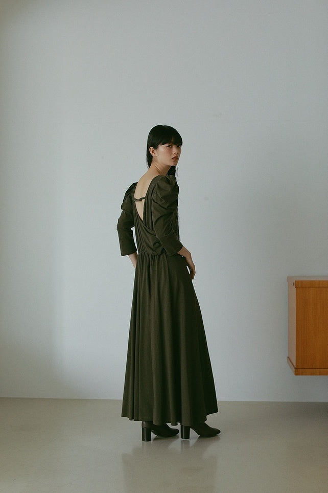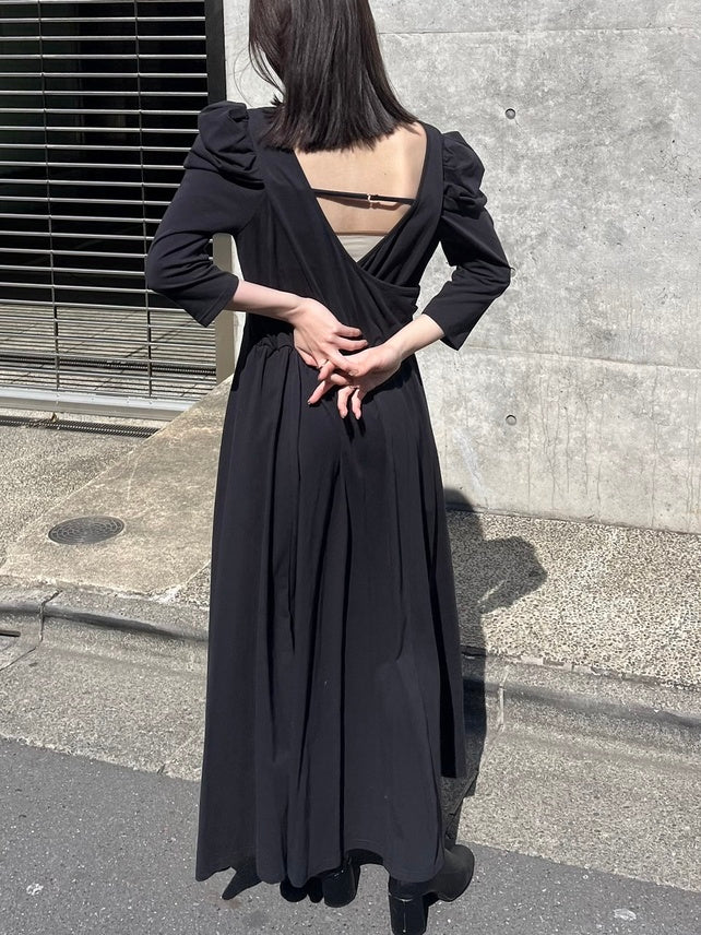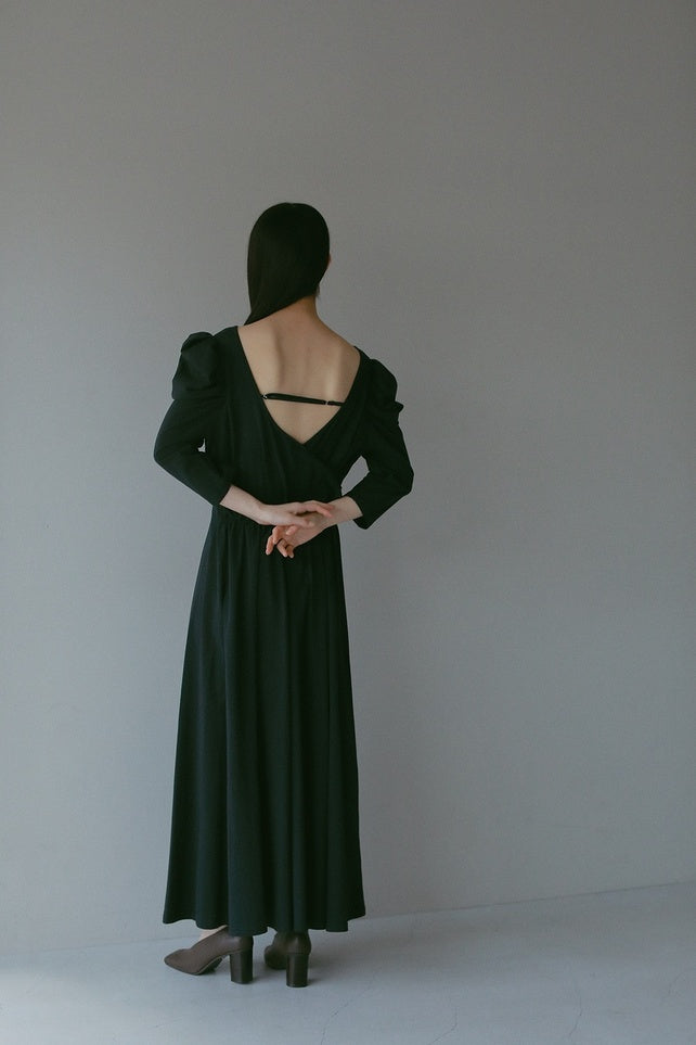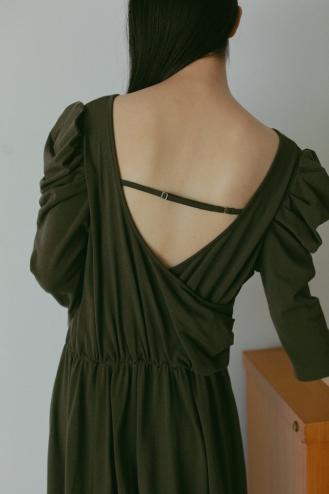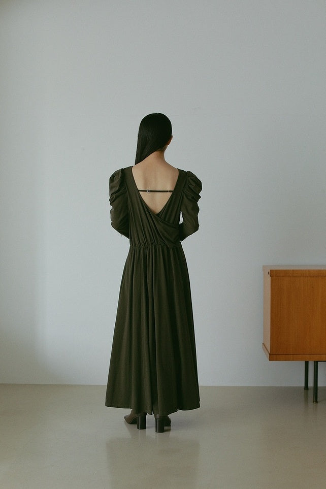 バックデザインをカシュクールにしていて、程よい抜け感があり女性らしい印象に。
