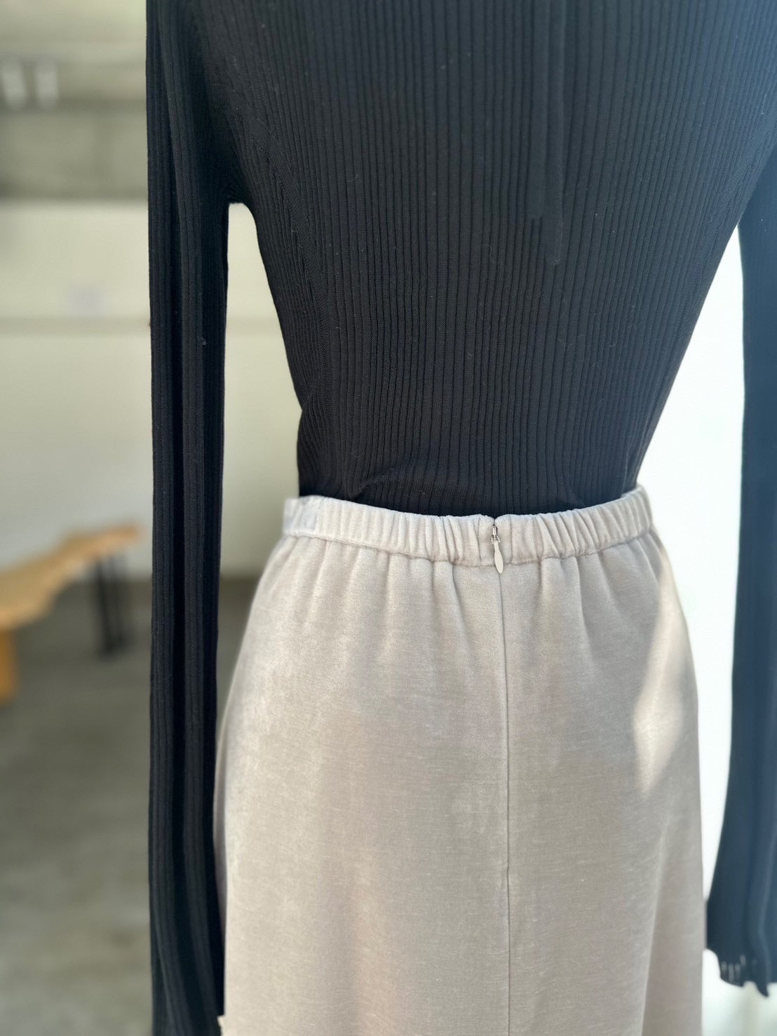 上品なマキシ丈のIラインベロアスカートが復刻。
