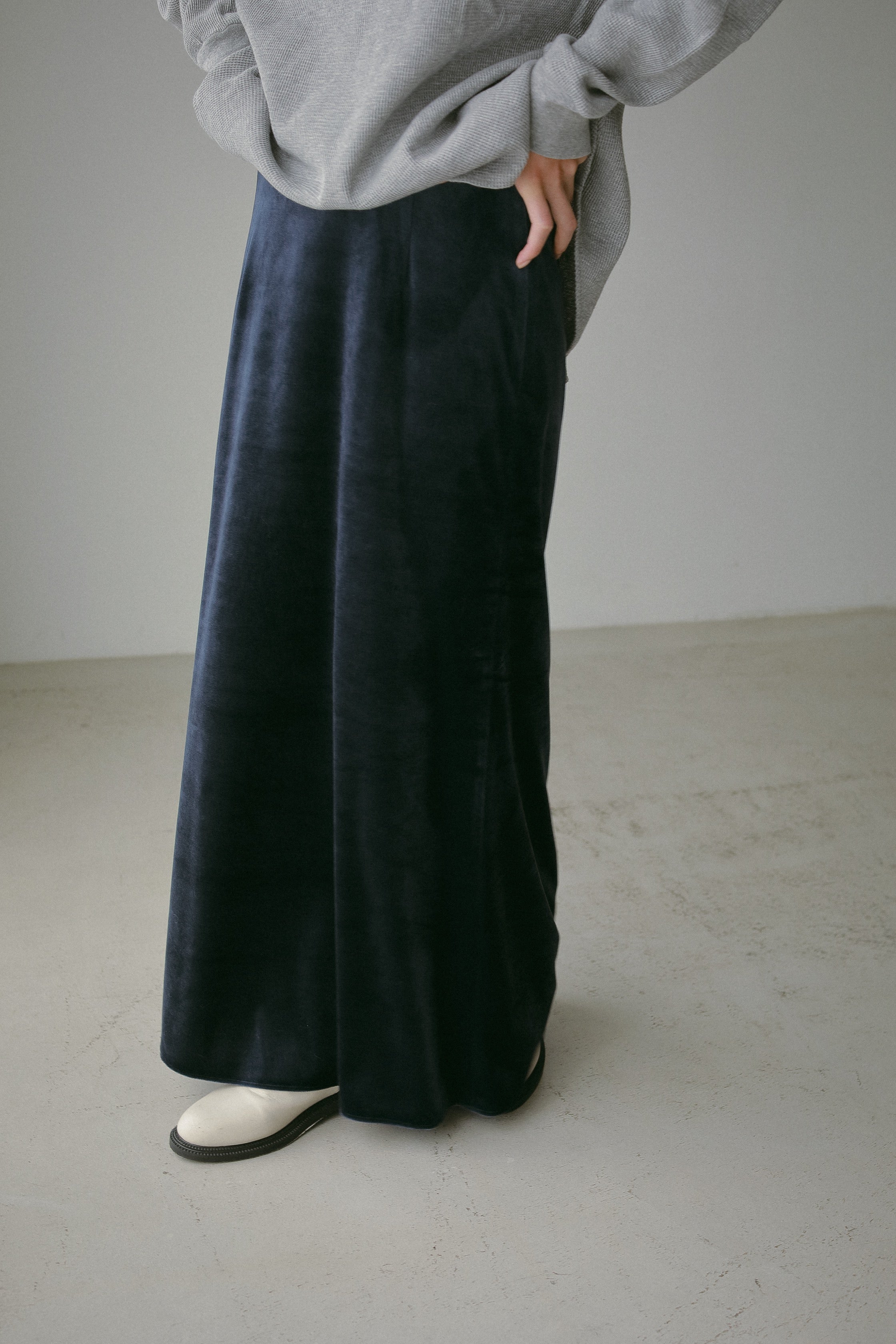 上品なマキシ丈のIラインベロアスカートが復刻。
